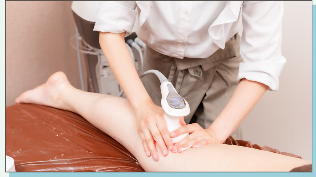 また、最強の痩身マシン「セルジュテ」を使用して、脂肪の分解と引き締めを行います。キャビテーションで脂肪を分解し、サイクロン吸引で引き締め、さらにお肌のハリやツヤを向上させます。オールハンドでのリンパマッサージも組み合わせ、サイズダウンと共に美肌ケアも同時に実現します。
