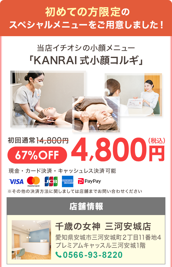 そこで、千歳の女神が行う“KANRAI式 小顔コルギ”の出番です。
