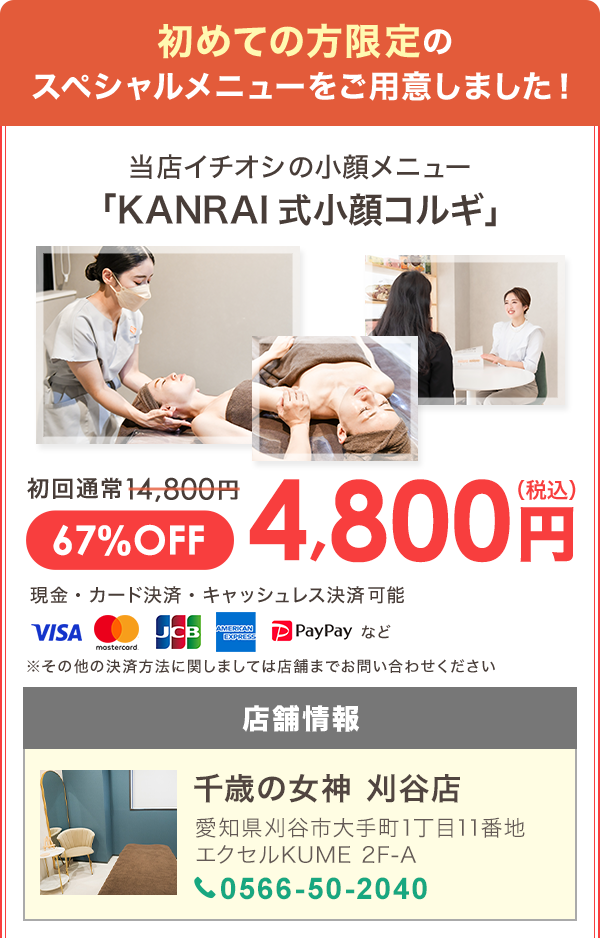 そこで、千歳の女神が行う“KANRAI式 小顔コルギ”の出番です。