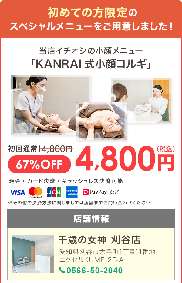 『KANRAI式 小顔コルギ』は、千歳の女神でしか受けられない門外不出の技術。